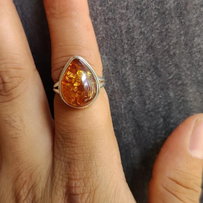 Baltic Amber Ring 925 Sterling Silver Gemstone Jewellery Women For Gift Promise Ring Handmade Pear Designer Wedding Ring