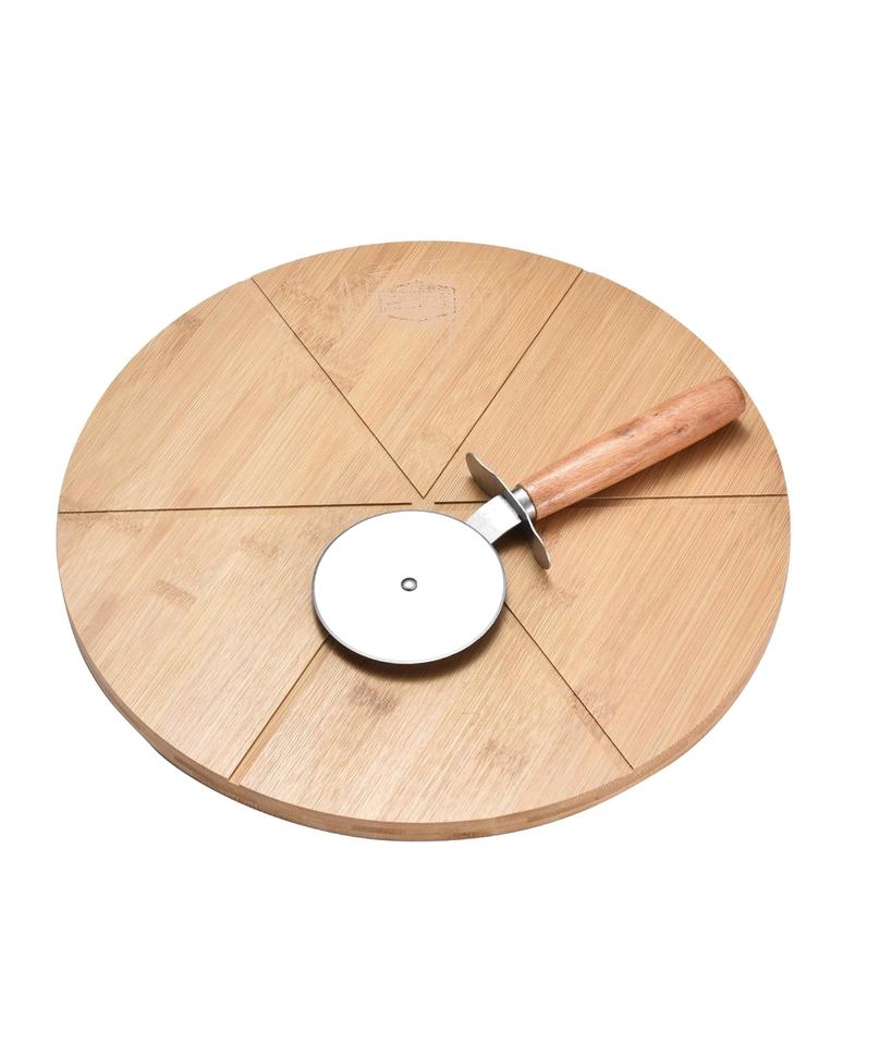 Bamboo 13.5'' Round Cutting Board with Stainless Steel Cutter - Wood Pizza Cutting Board - Decorative Wooden Cutting Board