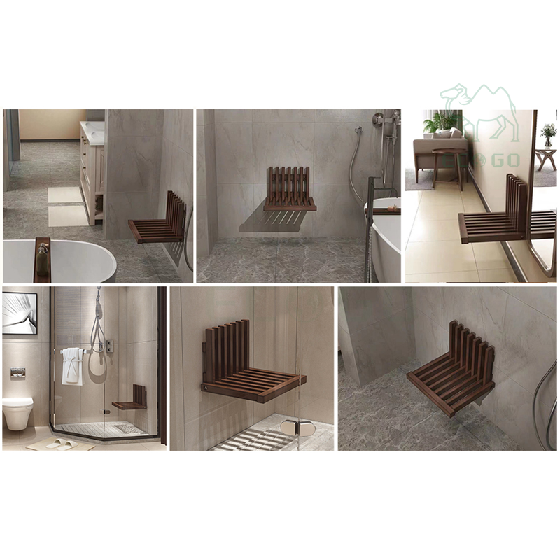 Bamboo Acacia Wood Shower Seat Bench Wall-Mounted Folding Stool Chair for Inside Shower Entryway Stool for Kids Adults