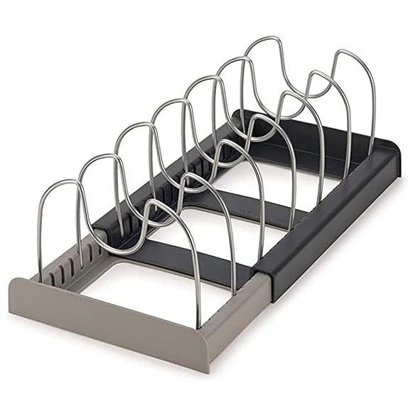 Bamboo Adjustable 2 Layer Organizer Rack for Cutting Board Bake Ware Pot Lid Holder-31494