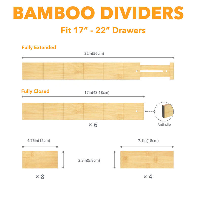 Bamboo Adjustable Drawer Dividers Inserts Labels Expandable Organizers for Bedroom Kitchen Office Bathroom-Packaged Boxes