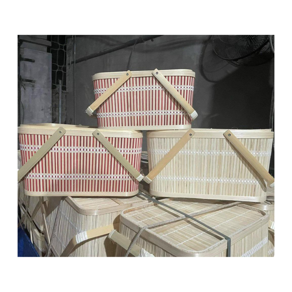 Bamboo Basket With Handle Folding Woven Wicker Customized Bamboo Picnic Basket Set Wooden Lid Cover with Cooler Bag
