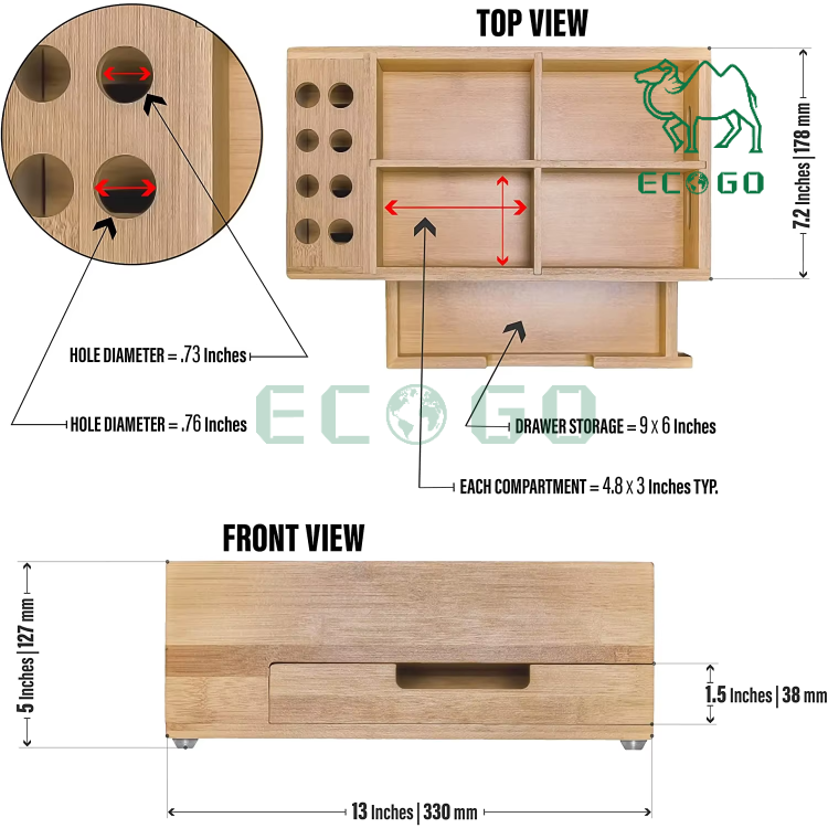 Bamboo Bathroom Makeup Organizer With Toothbrush Holder and Storage Tray With Countertop Large Drawer