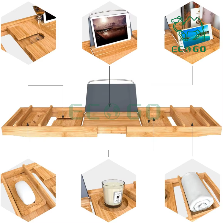 Bamboo bathtub caddy luxury bathtub trayDescription