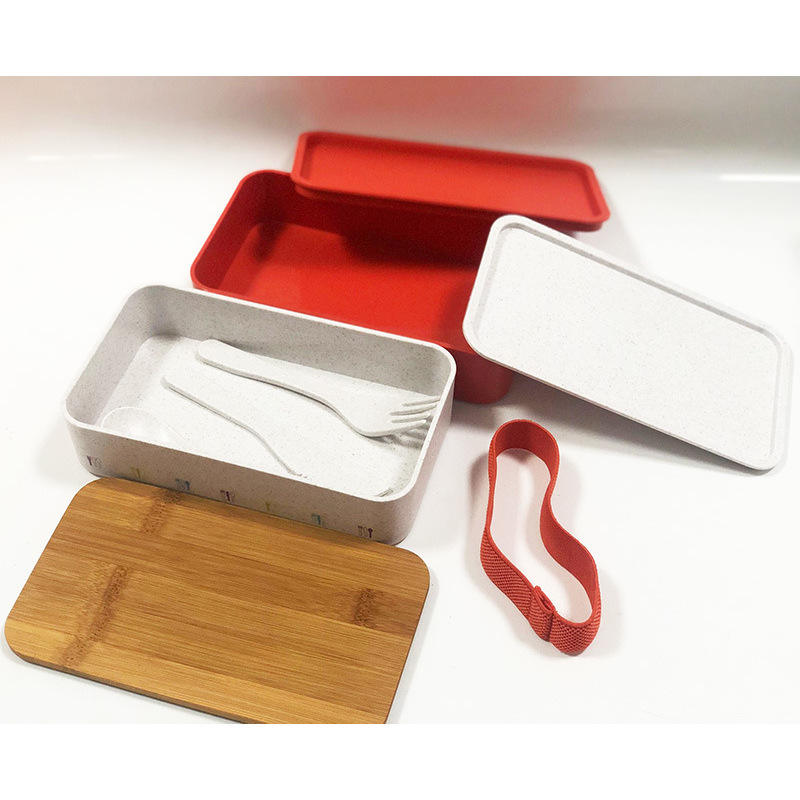 Bamboo Bento Box Student Portable Lunch Box Set Stackable Rectangle With Bamboo Lid Environment Friendly