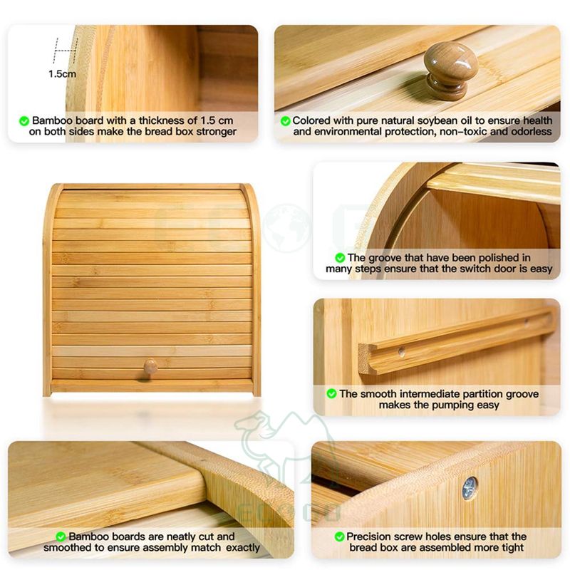 Bamboo Bread Box, 2 Layer Rolltop Bread Bin for Kitchen, Large Capacity Wooden Bread Storage Holder