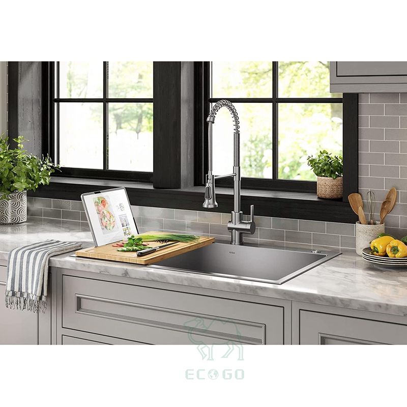 Bamboo Butcher Block with Tablet Holder Chopping Board Bamboo Cutting Board with Juice Groove Over-The-Sink