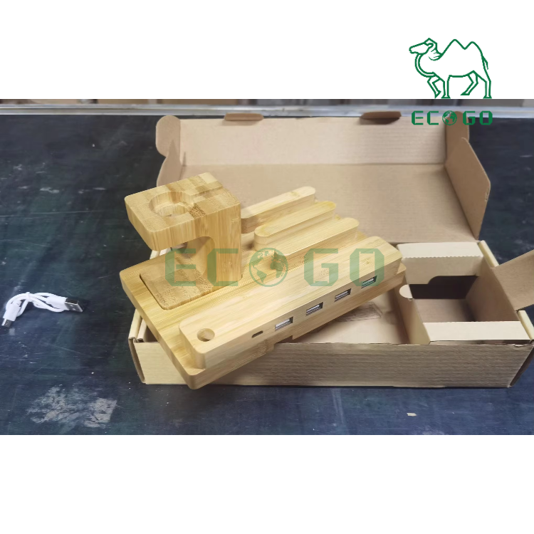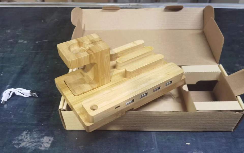 Bamboo Charger Stand Docking Holder Charger in 4 Ports Wooden Charging Dock Station Holder