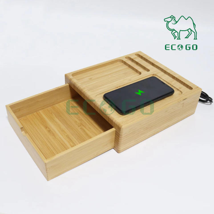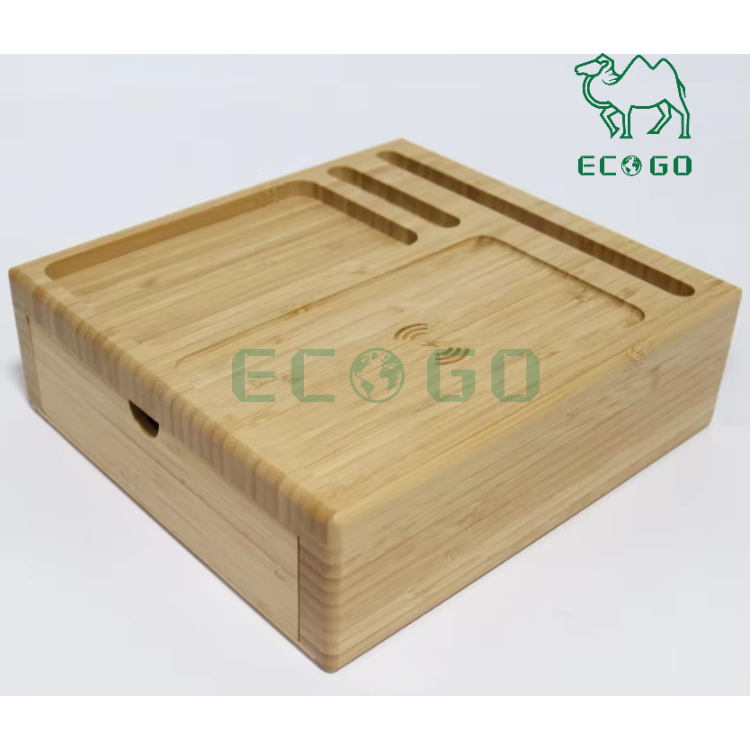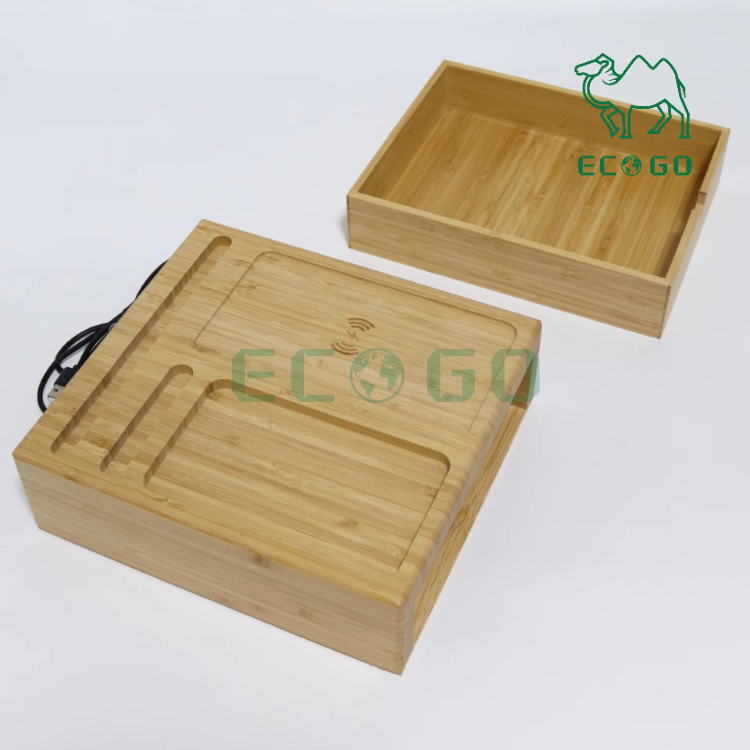 Bamboo Charging Cable Storage Box Wood Remote Storage Box Electric Wire Cable Storage Box for Home