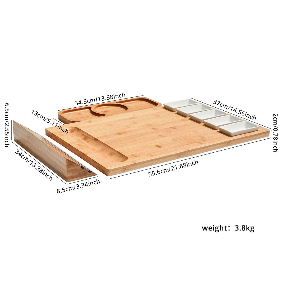 Bamboo Cheese Board Platter 4 Stainless Steel Knives and Magnet Holder Modern Wood Snack Serving Tray