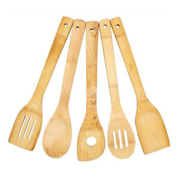 Bamboo Cooking Serving Wooden Spoon 5 Piece Set with 1 Piece Stand Eco-friendly Material
