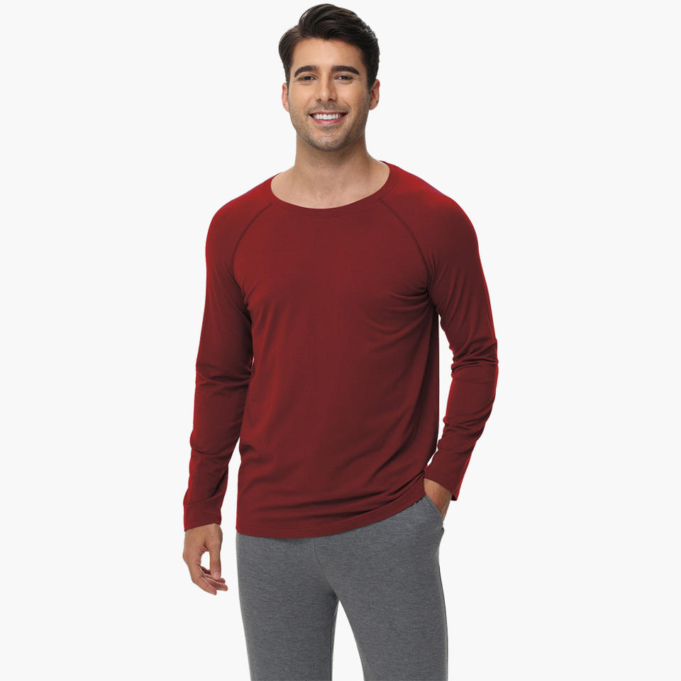 Bamboo Cozy T Shirt Mens Top Shirt Round Neck Long Sleeves Custom Men's Underwear Loungewear
