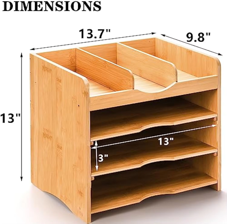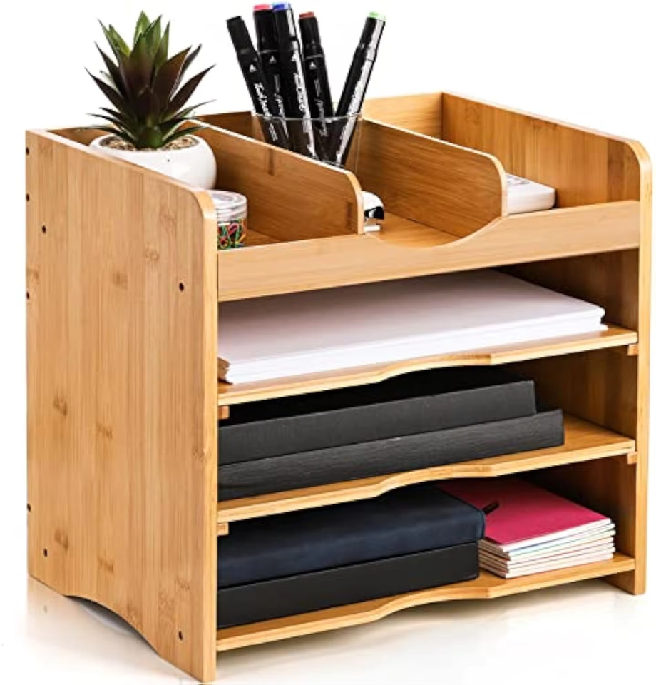 Bamboo Desk Organizer 3 Tier Adjustable File and Pen Holder