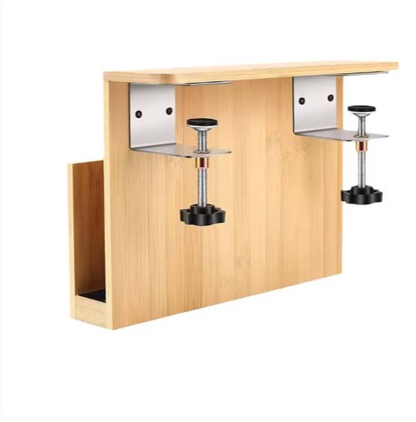 Maximize workspace with this side-mounted bamboo shelf