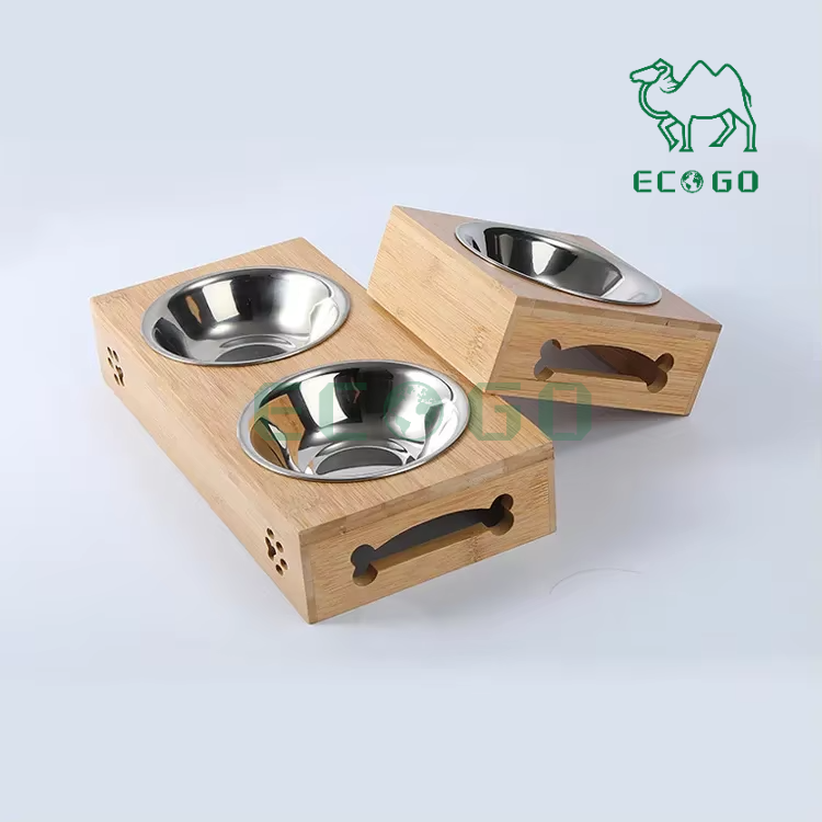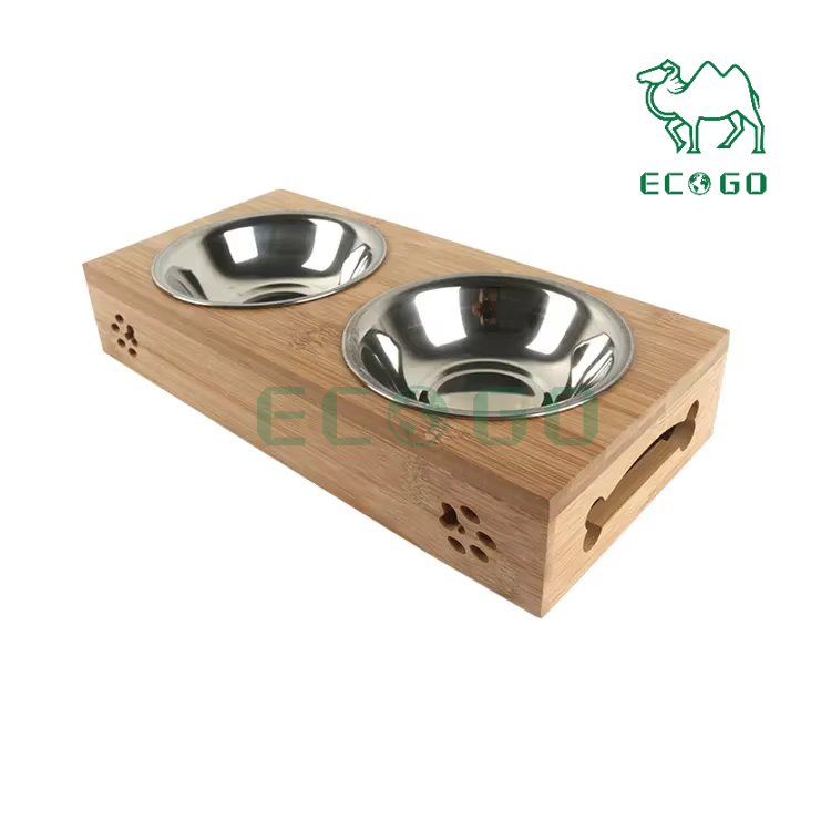 Bamboo Dog Bowl Pet Feeder Classical Raised Stand Wood Elevated Dog and Cat Bowl Pet Feeder