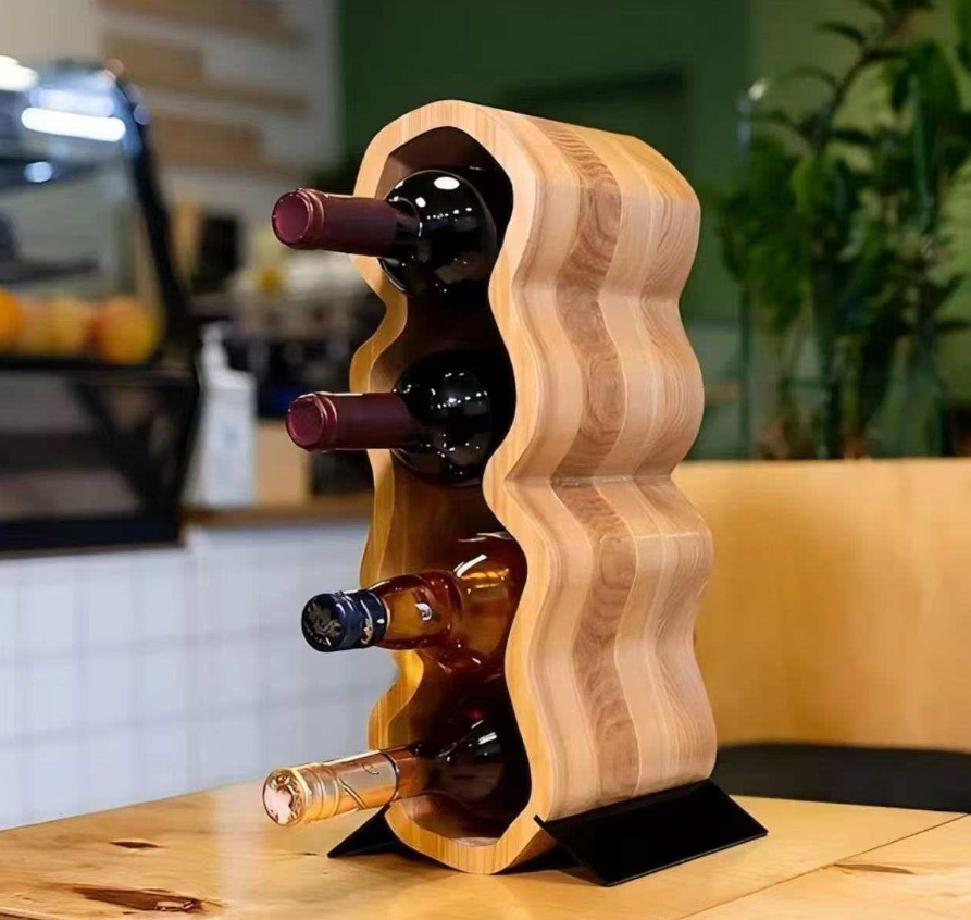 Bamboo Double-tier Wave-shaped Rustic Wine Rack Home Decorative Wine Display Stand for Living Room Hotel Restaurant Wholesale