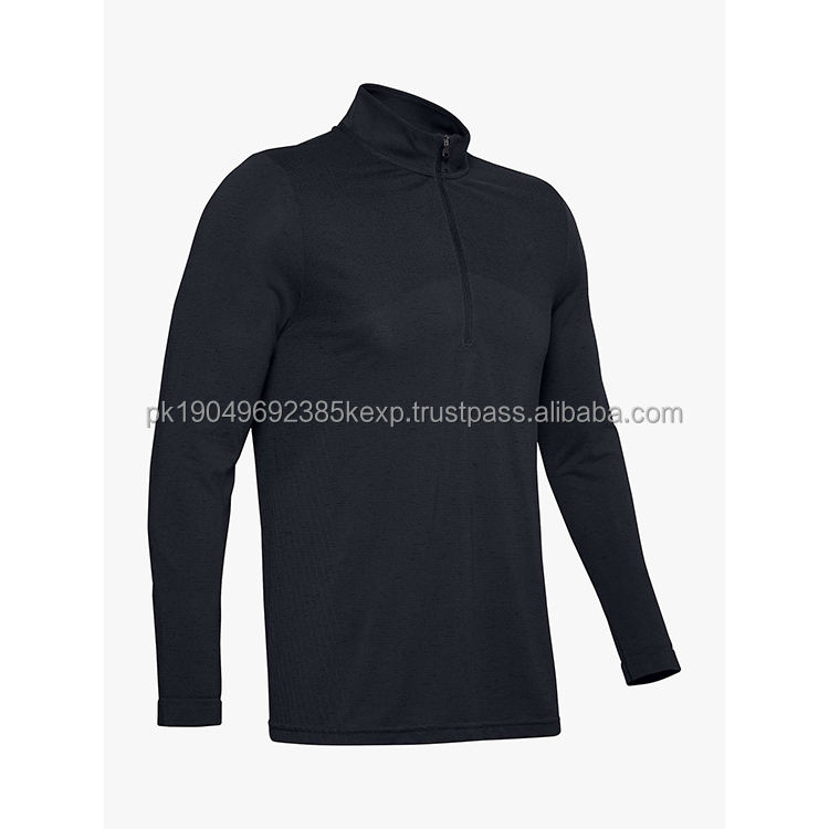 Bamboo Fabric Long Sleeve Black T-Shirt Men Seamless Half Zip Training Top T Shirt
