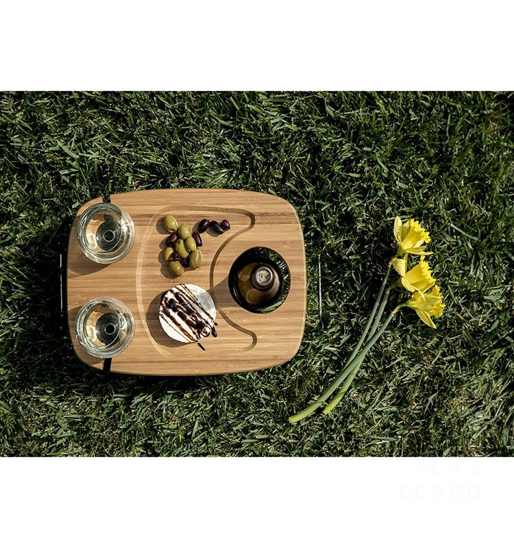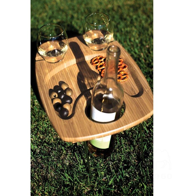 Bamboo Folding Picnic Table, Portable Wine and Snack Table
