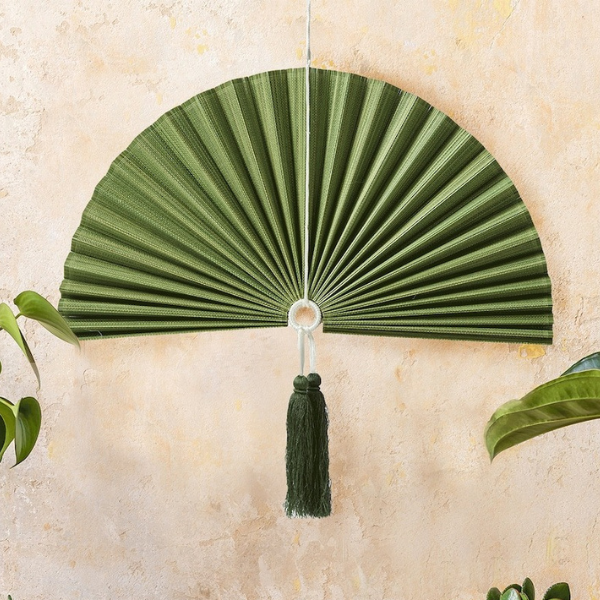 Vietnamese Manufacturer's Art Style Bamboo Folding Wall Fan Giant Bamboo Fan Headboard Tassel Oriental Hanging Fan Home Decor