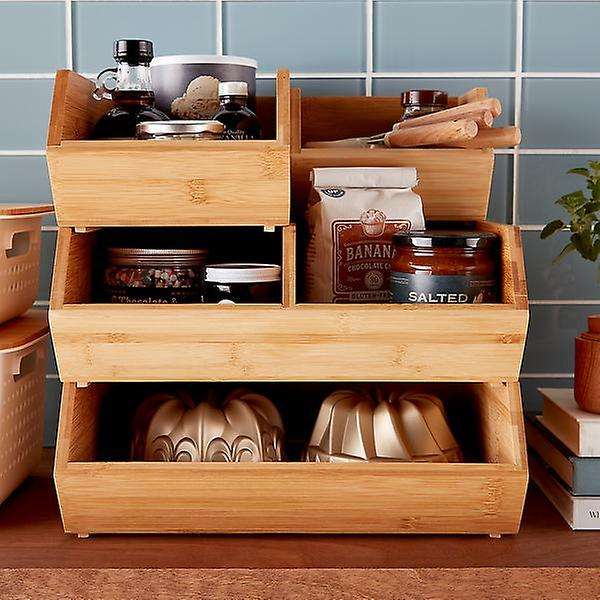 Bamboo Food Kitchen Storage Bin Desk Organizer Stackable Bamboo Storage Bins