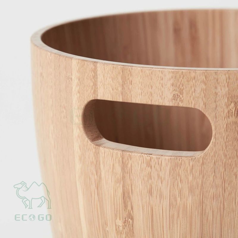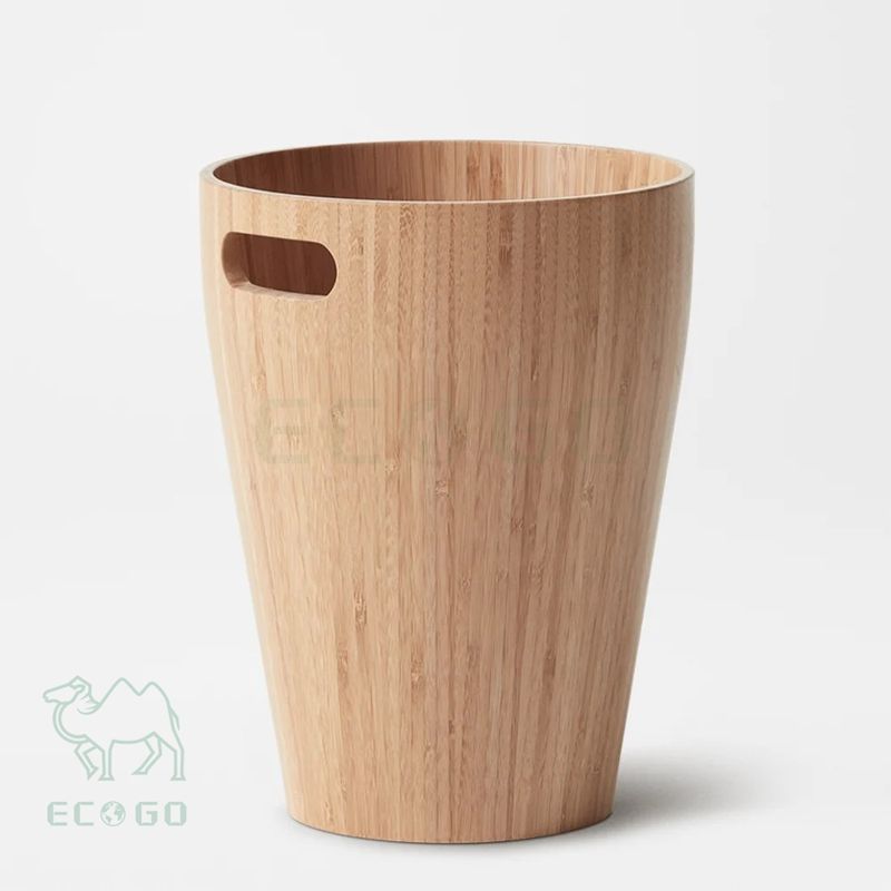 Bamboo Garbage Rubbish Bin Recycling Decorative with Handles for Bedroom Bathroom Natural Wood Custom