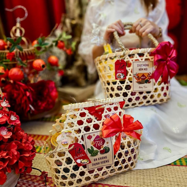 Bamboo Gift Basket Handmade for Holiday Hampers, Weddings and Birthday Presents