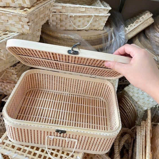 Bamboo Gift Basket with Elegant Ribbon and Lid for Holiday Hamper, Cultural Gift Box or Organic Food Packaging