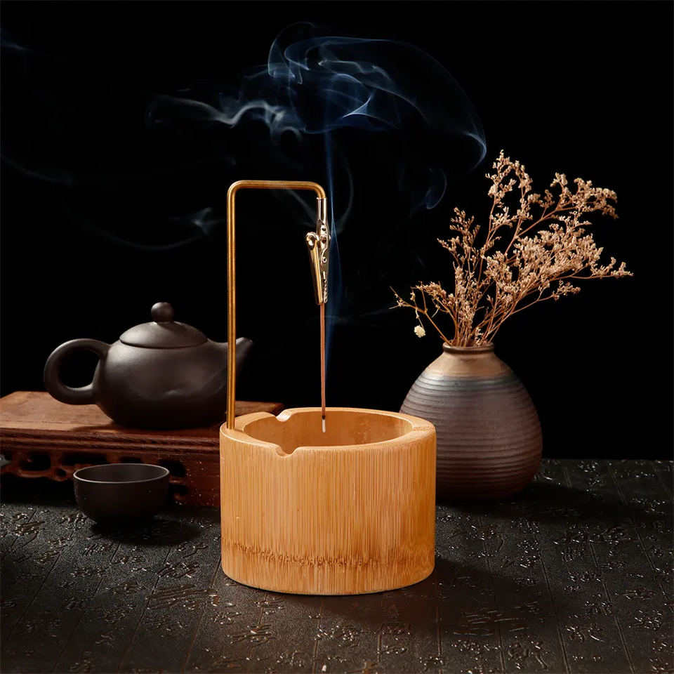 Bamboo Incense Burner Upside Down Metal Incense Holder Ash Catcher for Incense Stick Plate Home Decorative Craft Religious Use