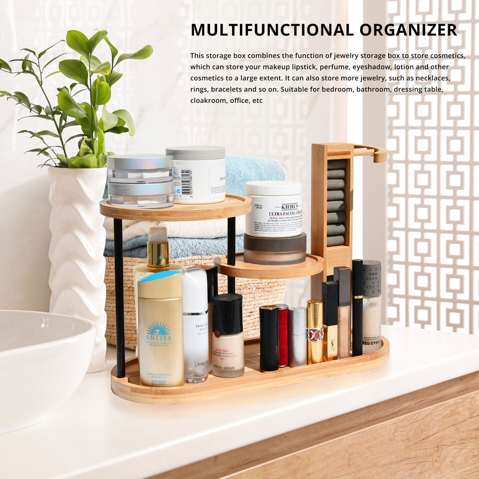 Bamboo Jewelry Organizer Stand Hanging Holder 3-Tier Tray With Earring Tower