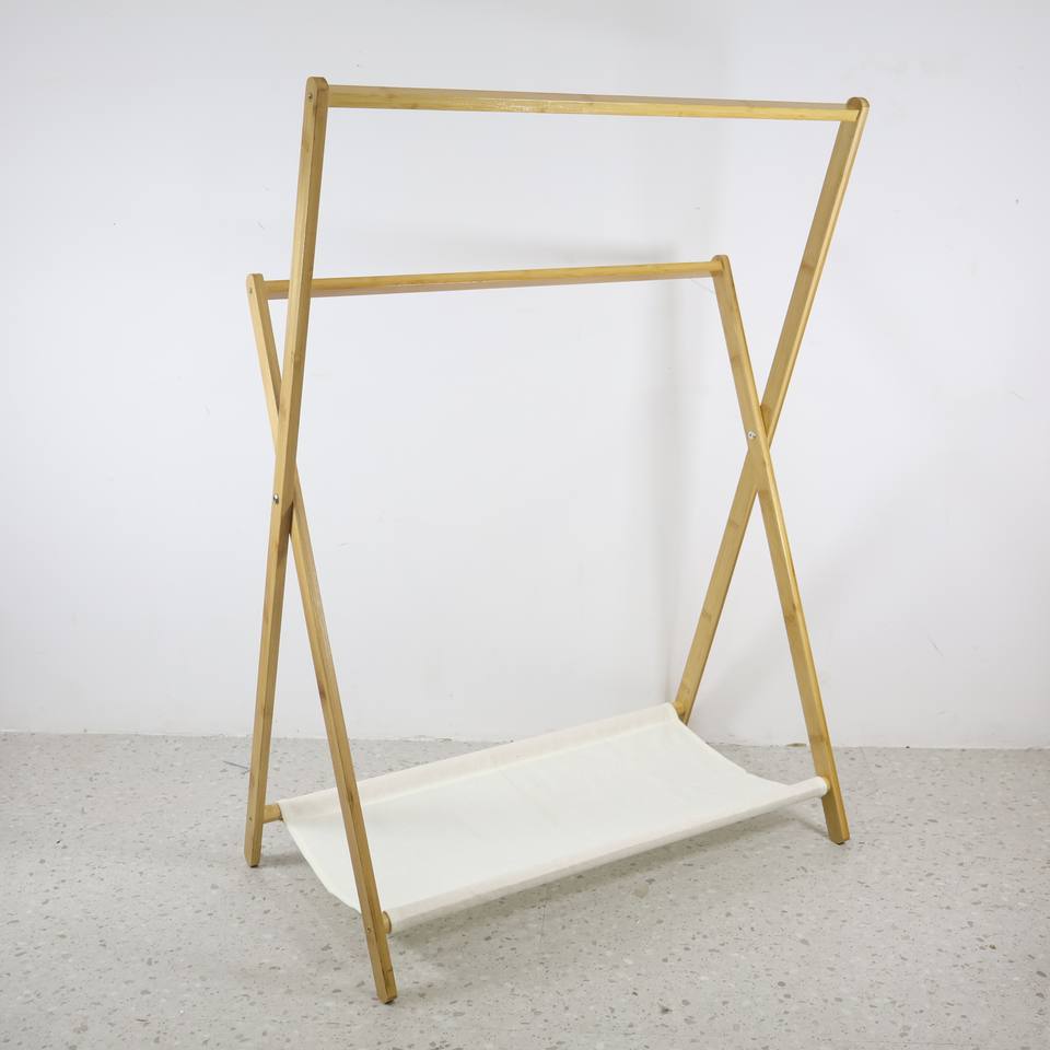 Bamboo Kids Clothing Rack With Storage Shelf Double Rods Smooth Edges Safe for Kids Coats Dresses Organizer Children Bedroom