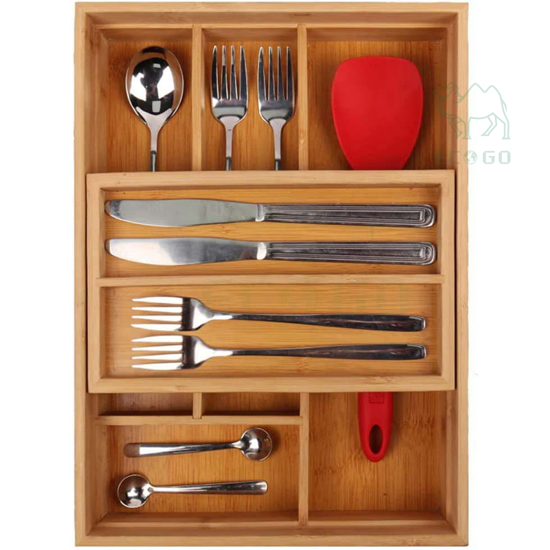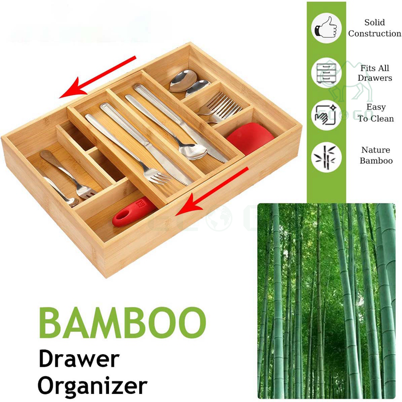 Bamboo Kitchen Utensil Drawer Organizer for Cutlery Flatware Hardware Organizer With Small Organizer