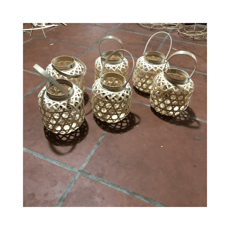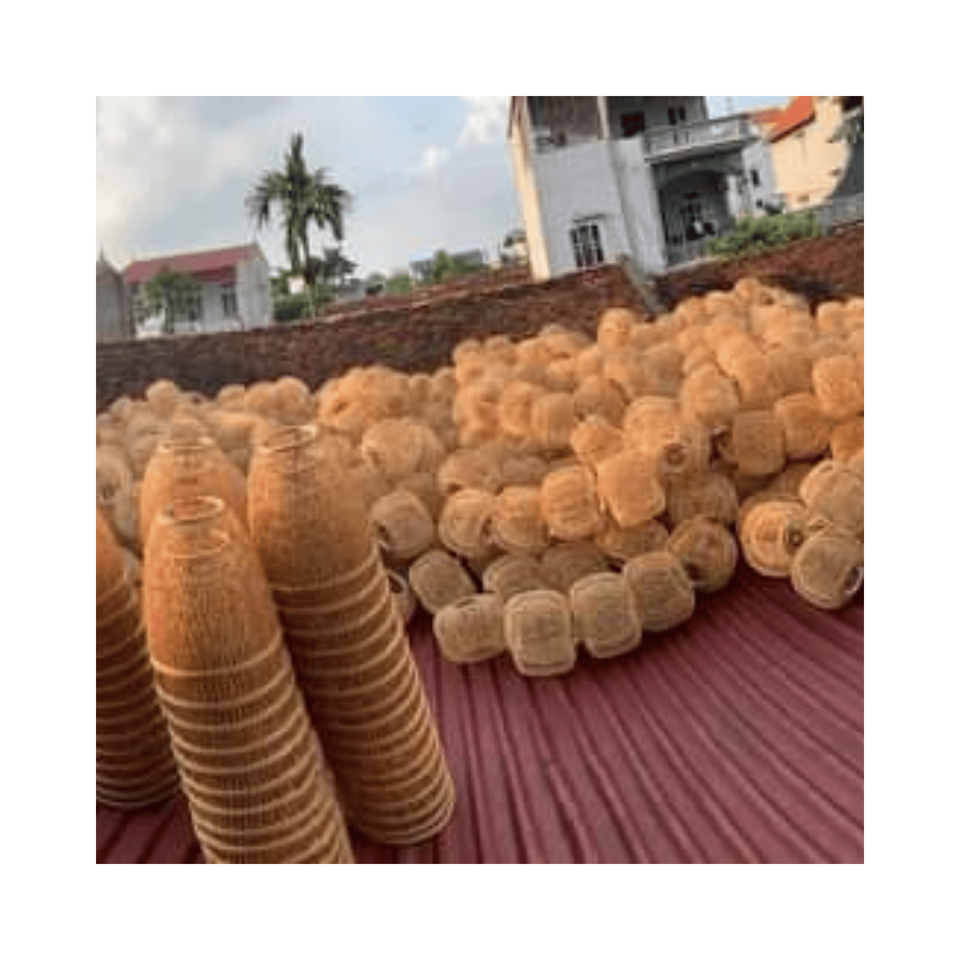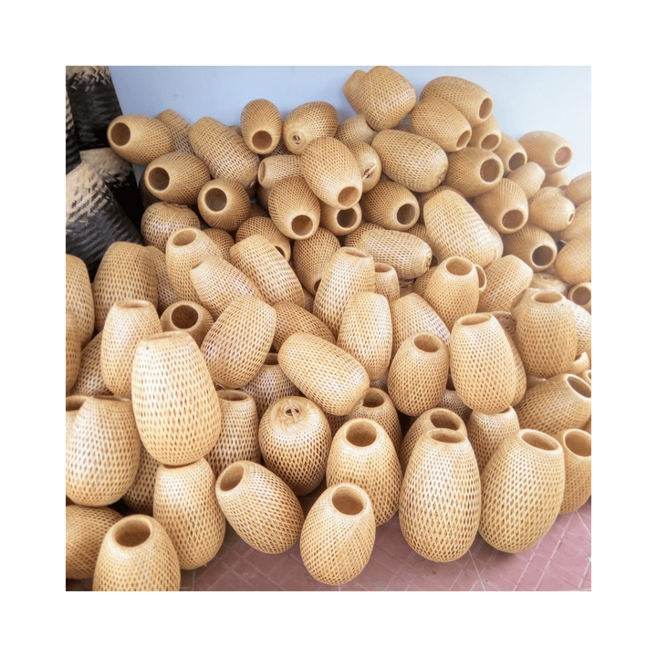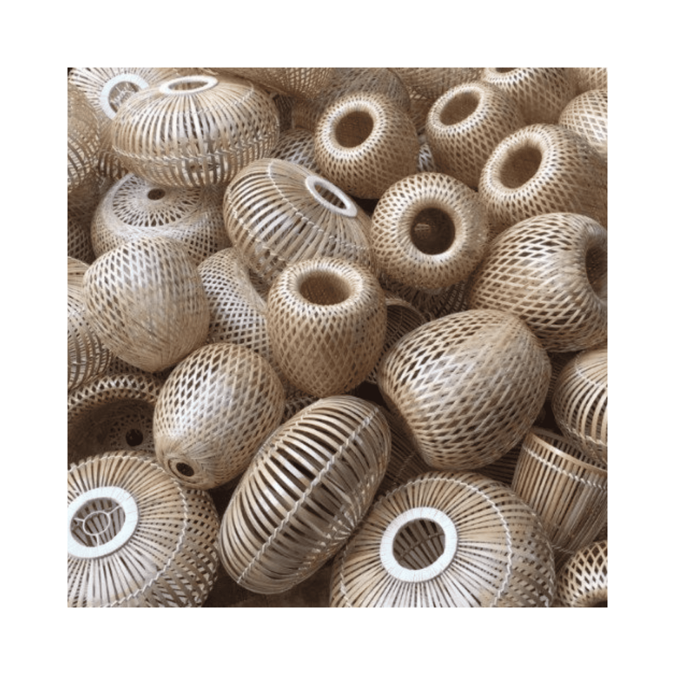 Bamboo Lamp braided bamboo tulip shade on iron fitting for boutique shops and studios, elegant pendant lighting from Vietnam