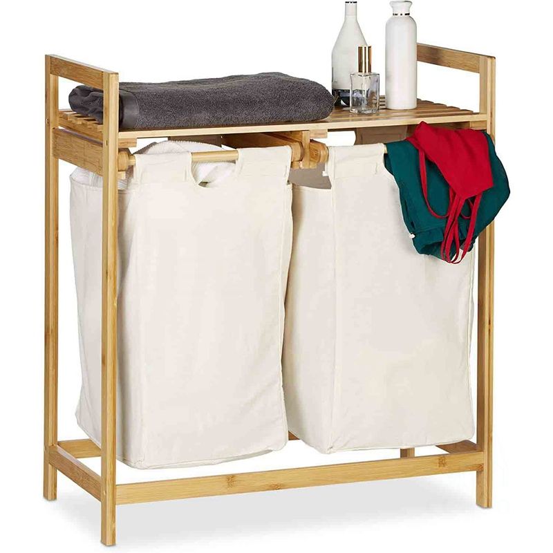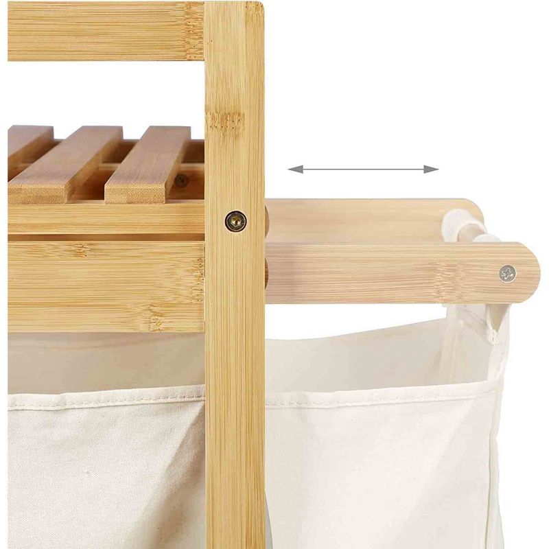 Bamboo Laundry Basket, Laundry Sorter with Shelf, 2 Extendable Compartments Portable Laundry Basket