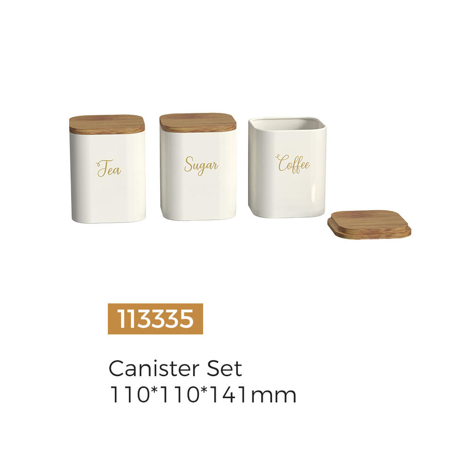 Bamboo Lid Bread Box Storage Jar Set Ivory White Rectangle Kitchen Sealing Container For Tea Sugar Coffee Bread