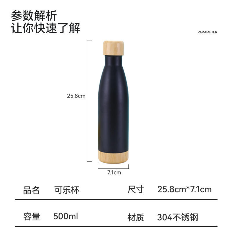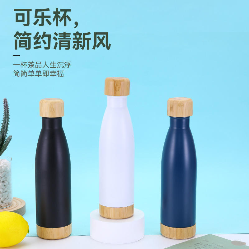 Bamboo Lid Stainless Steel Water Bottle 304 Insulated Thermos Travel Outdoor Use All Sizes
