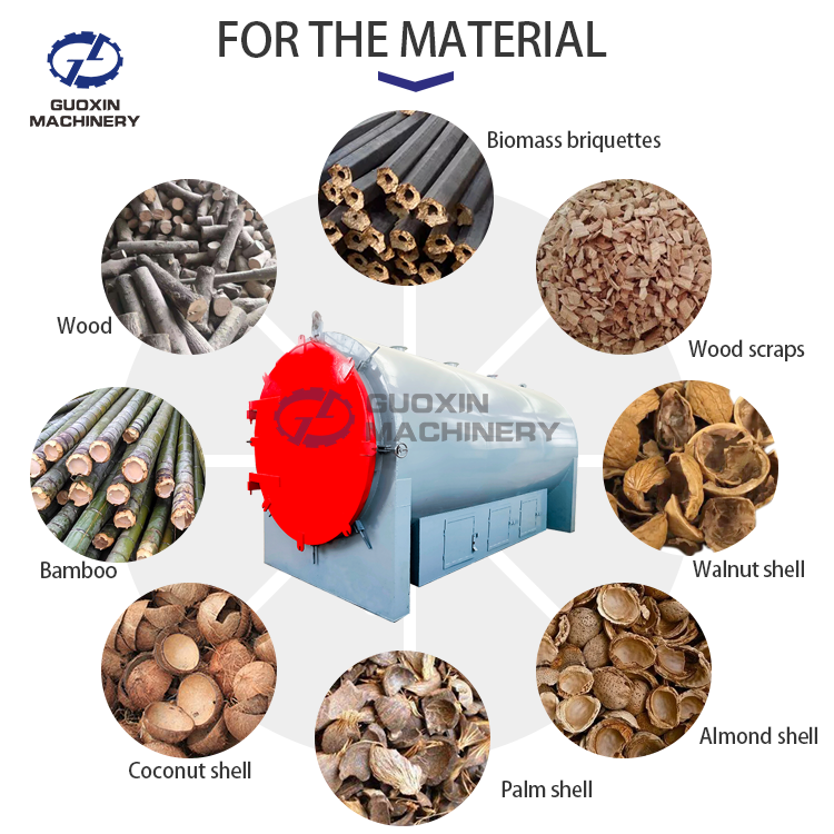 Bamboo Log Wood Carbonising Furnace Horizontal Wood Straw Carbonising Furnace Bamboo Walnut Charcoal Machine Equipment