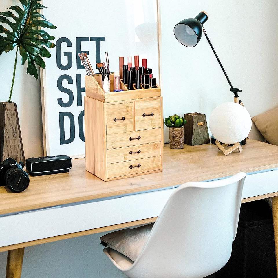 Bamboo Makeup Organizer with Drawers Large Cosmetic Organizer Countertop wooden makeup box wood box tray for makeup