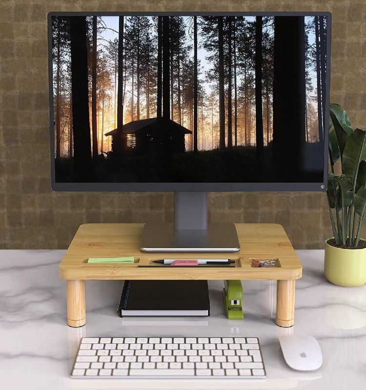 Bamboo Monitor Stand Riser With Height Adjustable and Storage Organizer