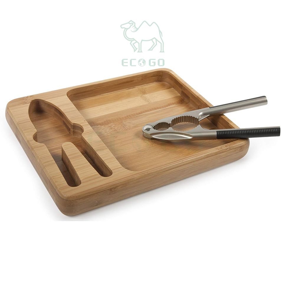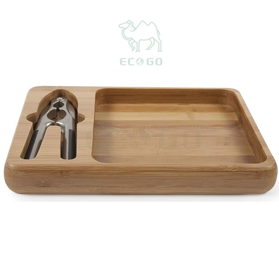 Bamboo Nut Tray Bowl Set with Stainless Steel Metal Nut Cracker