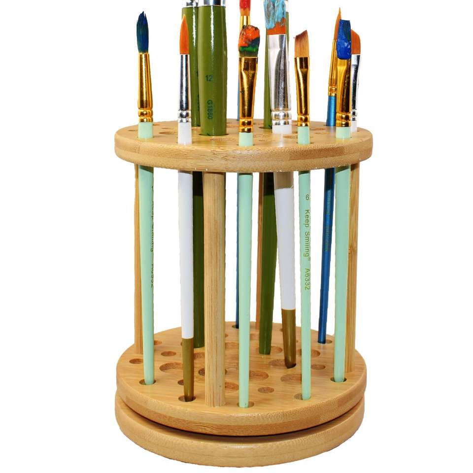 Bamboo Paint Brush Tray Drawing Art Supplies Holder Rack Rotating Paint Holder Watercolor Paint Brush Organizer Display Stand