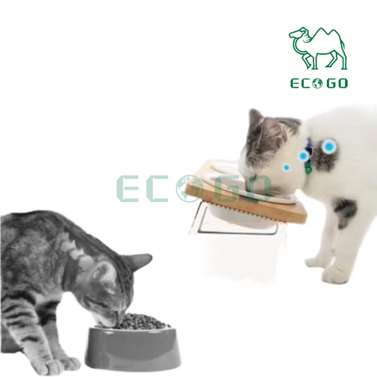 Bamboo Pet Bowl Holder With Round Shape Table Drinking Cat Food Holder and Water Stocked for Cats and Dogs