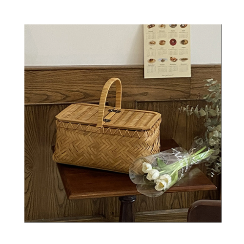 Bamboo Picnic Basket Compact Vietnam Woven Design for Easy Carrying Food Serving or Rustic Wedding Display