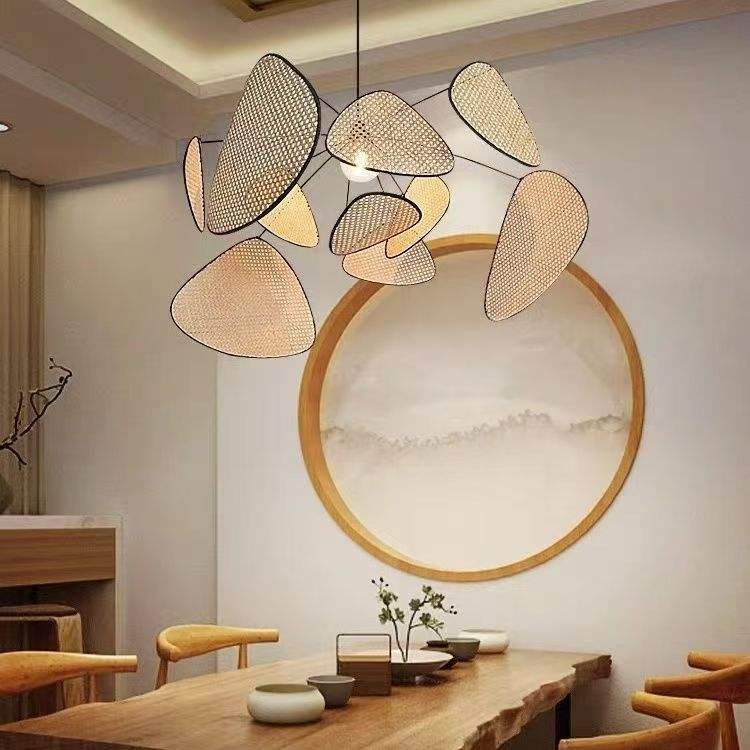 Bamboo Rattan Art Design LED Pendant Lights for Hotel Home Dining Room Living Room Decoration Modern Home Decor Chandelier