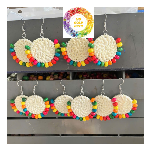 Bamboo Rattan Straw Tassel Drop Earrings Handmade Wooden Weaving Jewelry Natural Boho Statement for Women Gift