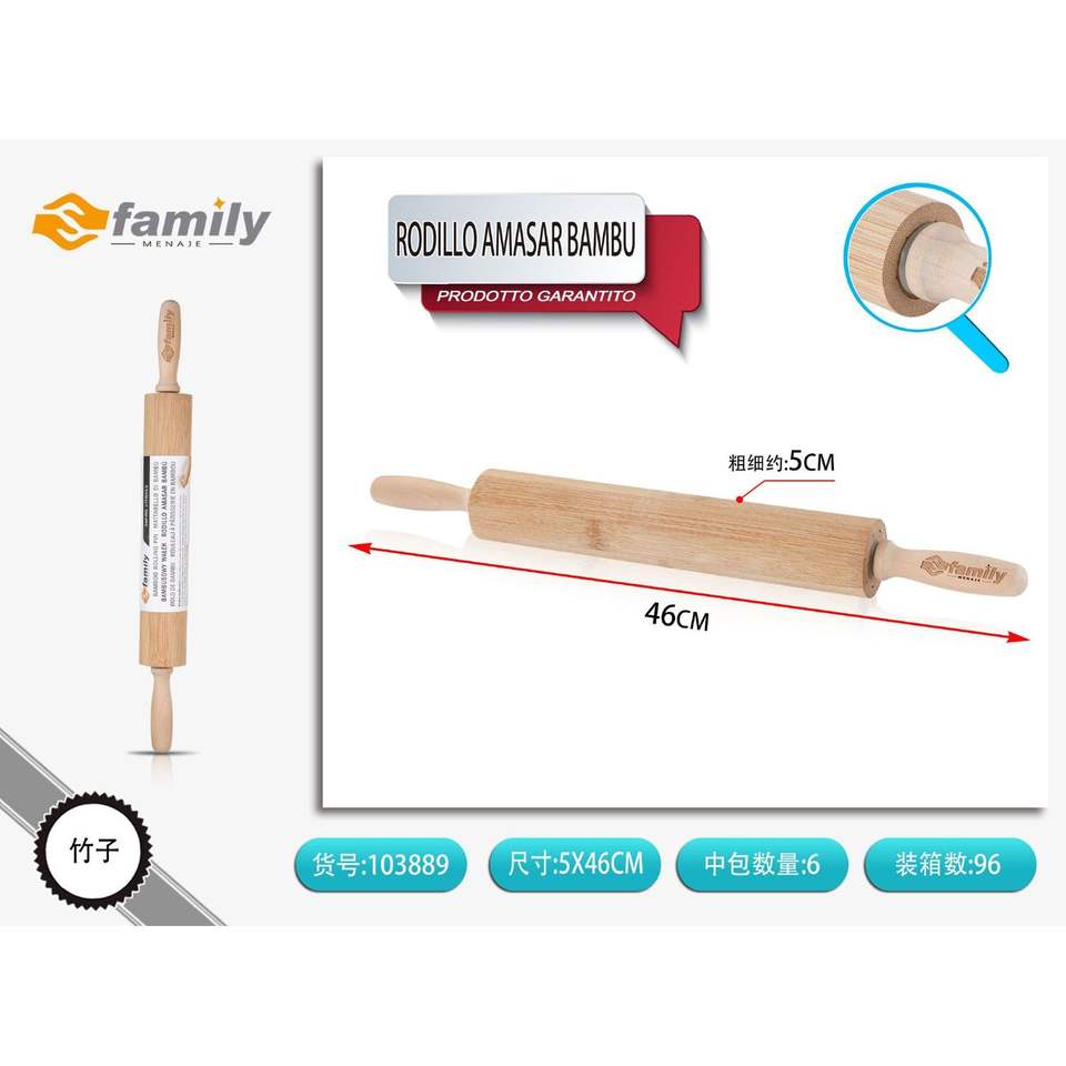 Bamboo Rolling Pin with Pastry Board Pattern 5.0*46cm Kitchen Utensil Laser Logo