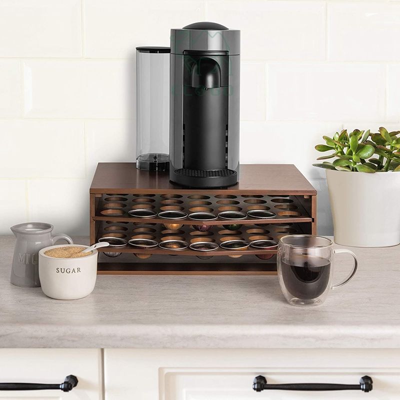 Bamboo Rotating Coffee Pod Organizer Storage Wood Coffee Capsules Rack Holder for Office Home