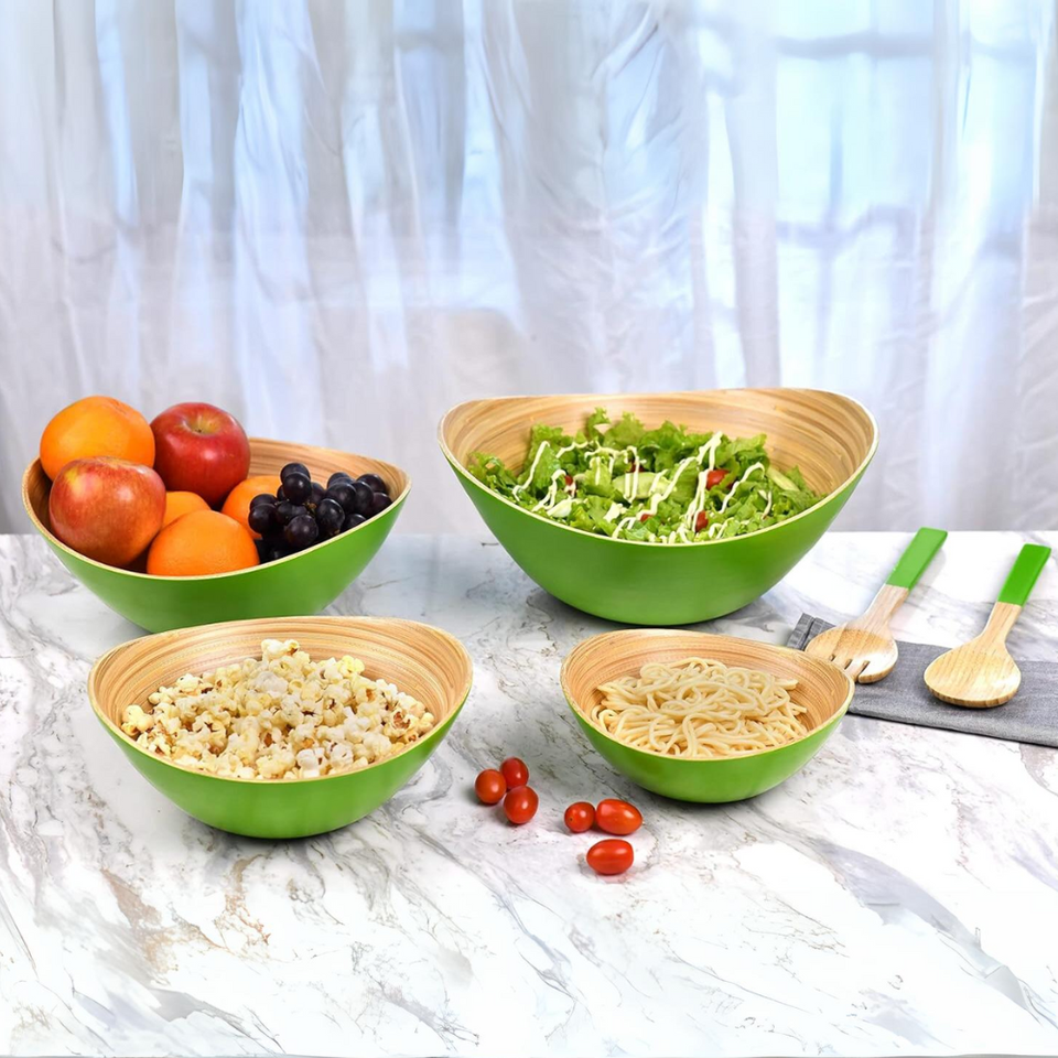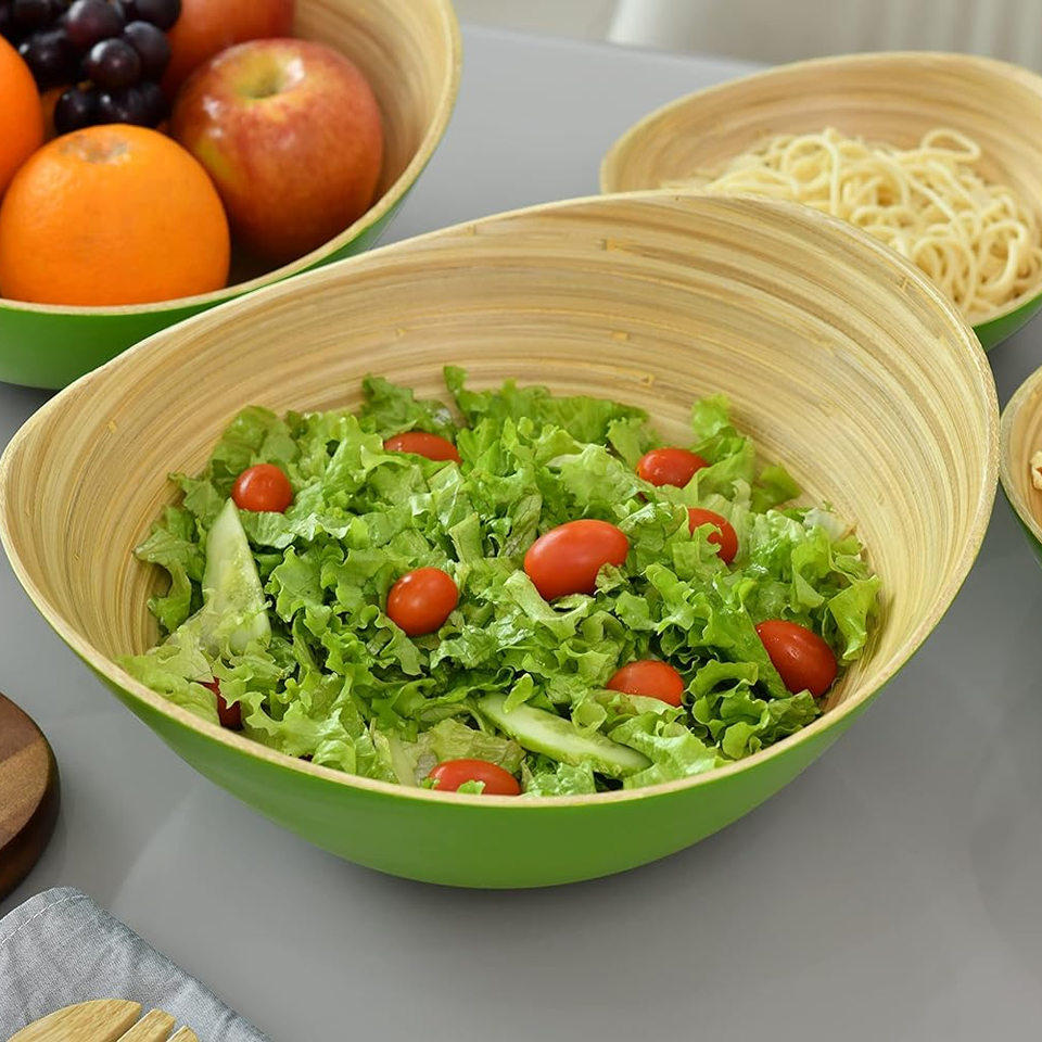 Bamboo Serving Bowls, Large Bamboo Salad Bowl with Servers Included, Eco Friendly Handcrafted Bamboo Bowls for Kitchen