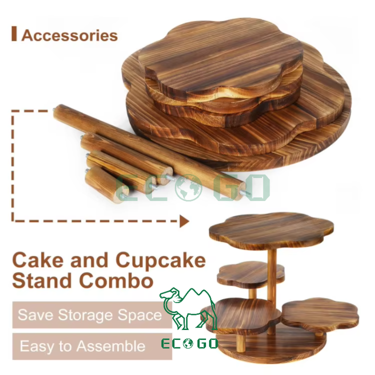 Bamboo Serving Tray Cake Stands Set Cake Display Cupcake Stands Wooden With Lid Round With Dome Custom Wooden Cake Stand