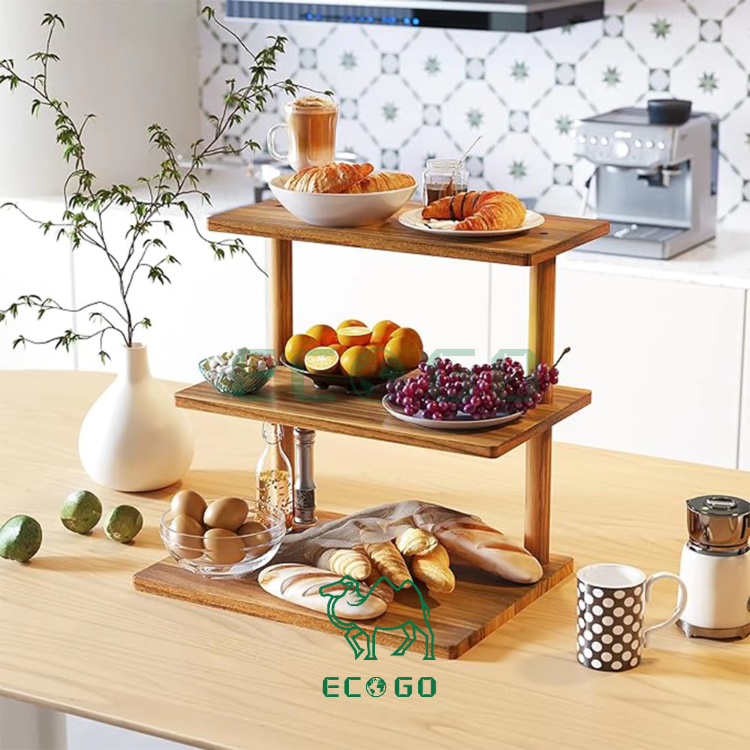 Bamboo Serving Tray Cake Stands Set Cake Display Cupcake Stands Wooden With Lid Round With Dome Custom Wooden Cake Stand
