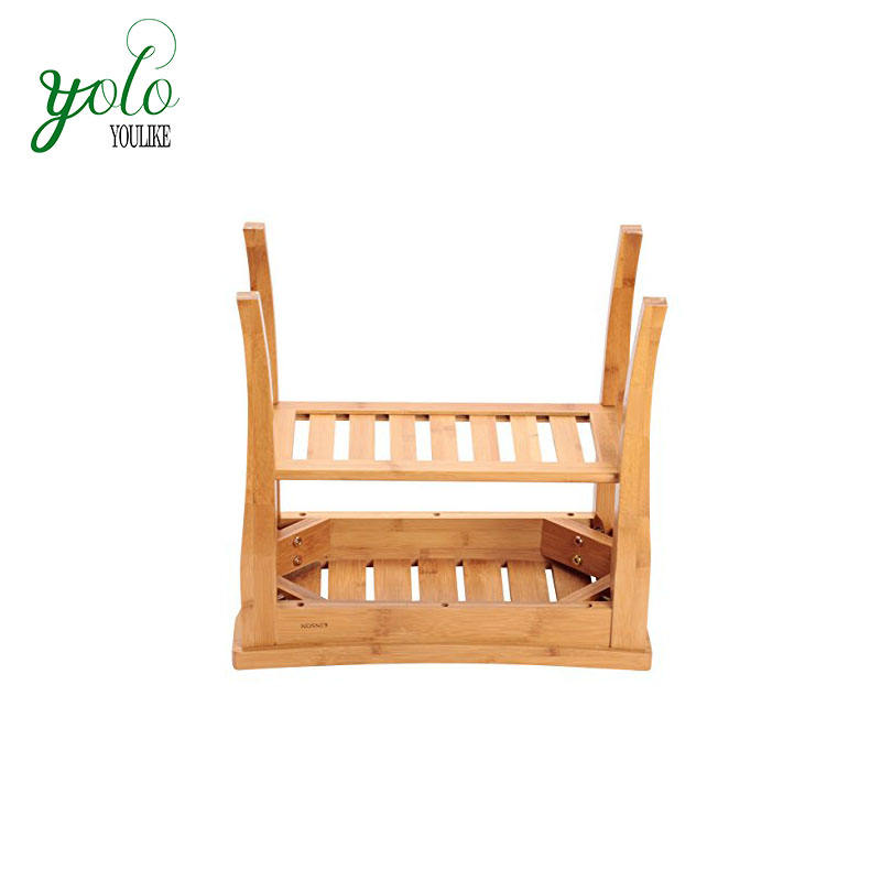 Bamboo Shower Bench Seat Wooden Spa Bath Deluxe Organizer Stool with Storage Shelf for Indoor
